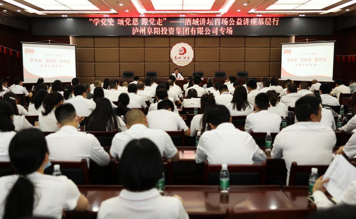 5月19日下午,“學黨史頌黨恩跟黨走”——酒城講壇百場(chǎng)公益講座基層(céng)行泸州阜陽投資集團有限公司專場(chǎng)在政...